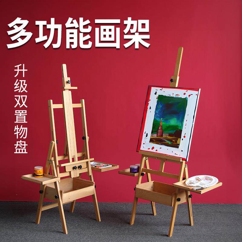 木质画架美术生专用油画架4k画板素描写生支架式展示架抽屉画架可折叠便携儿童桌面美术绘画架子素描工具套装