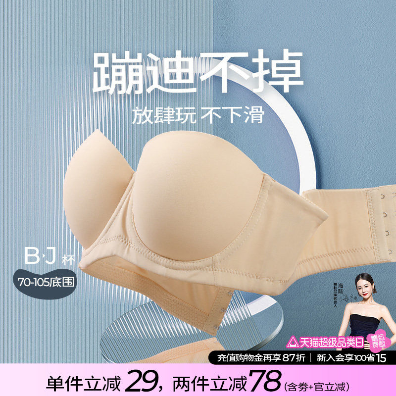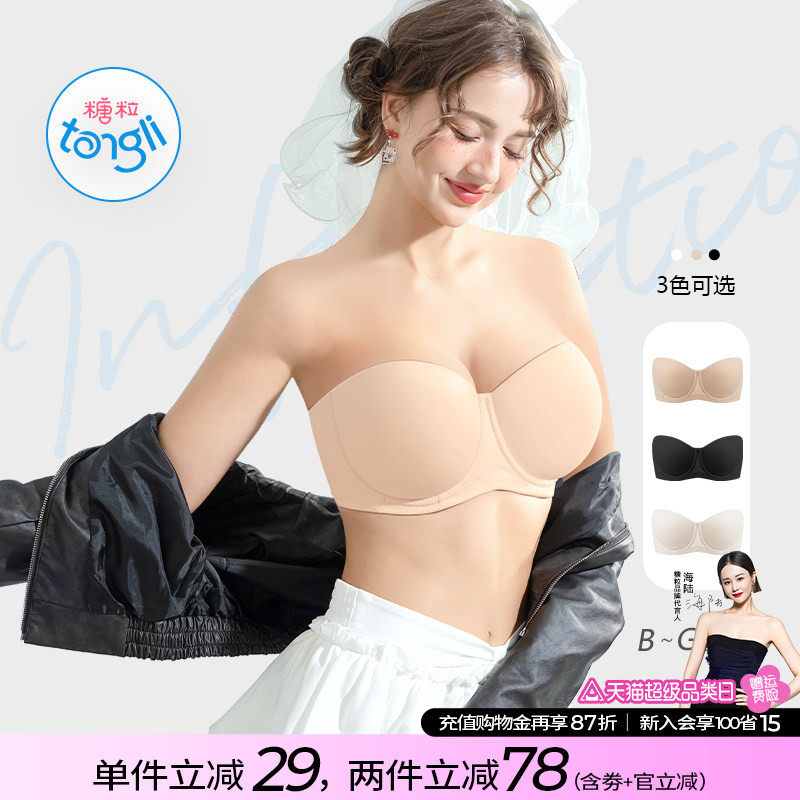 糖粒蹦迪无肩带无痕内衣女防滑聚拢抹胸婚纱大胸防下垂大码文胸罩
