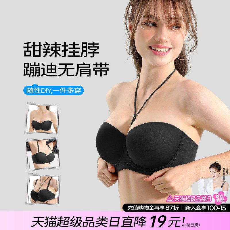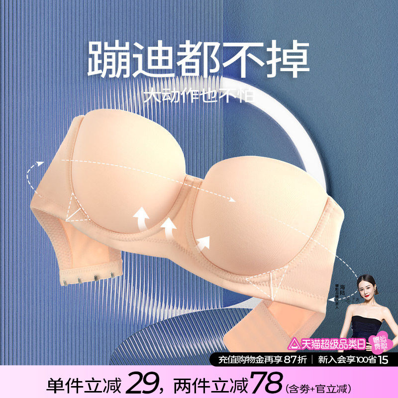 无肩带隐形文胸性感无痕内衣女上薄下厚胸贴婚纱聚拢防滑美背抹胸