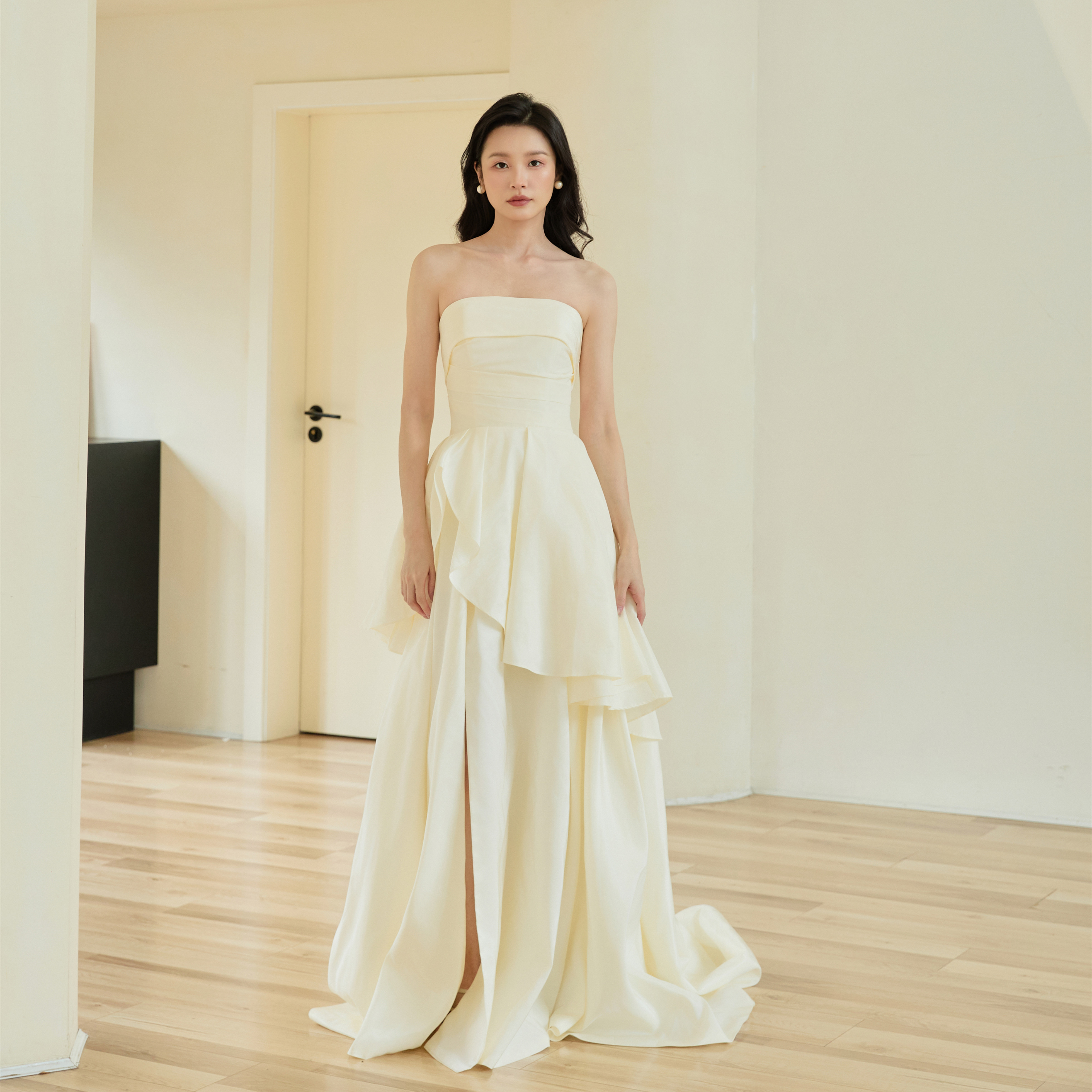 IRISY「云舒」法式抹胸新娘订婚礼服轻奢小众轻婚纱气质长款白裙