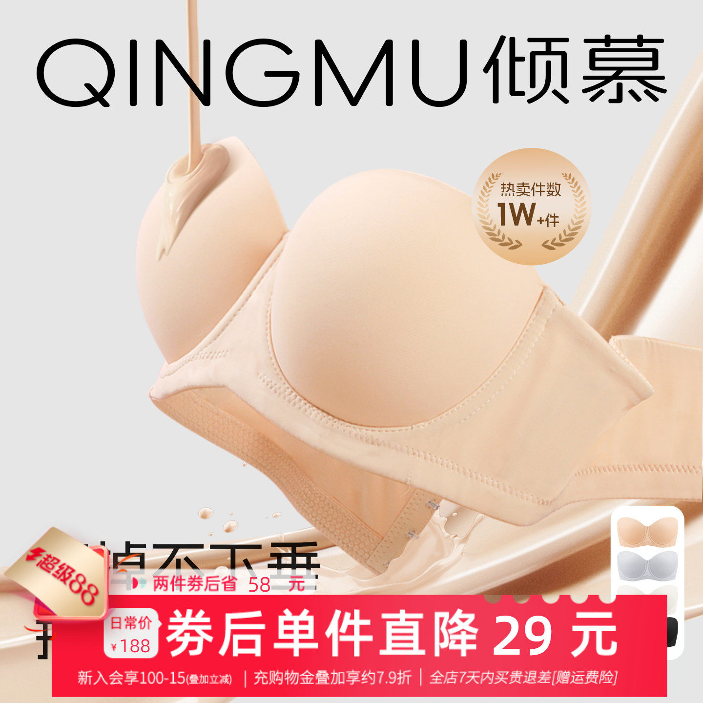 倾慕艺生大码无肩带文胸光面无痕防滑聚拢防下垂薄款裹胸婚纱bra
