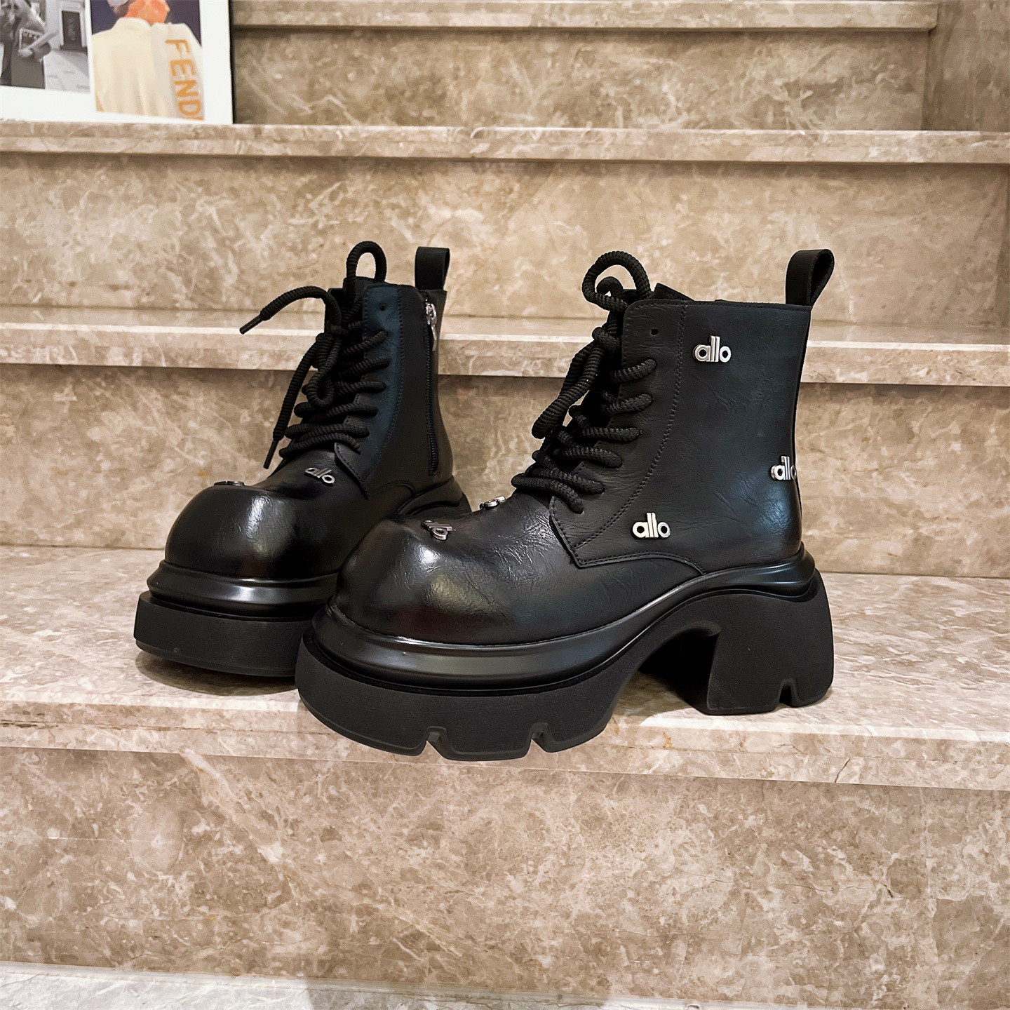 爱米高2025年新款真皮厚底马丁靴英伦风骑士靴机车靴粗跟短靴女鞋