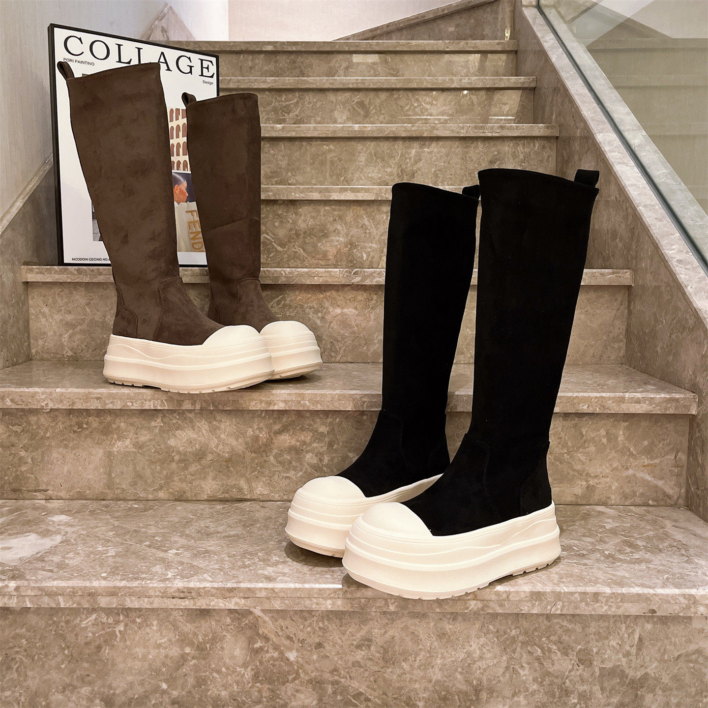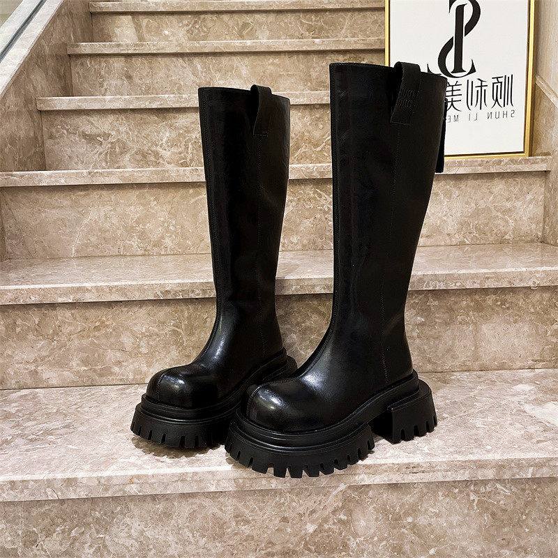 爱米高2025新款贝壳头弹力靴瘦瘦靴马丁靴机车靴长筒靴厚底松糕6c