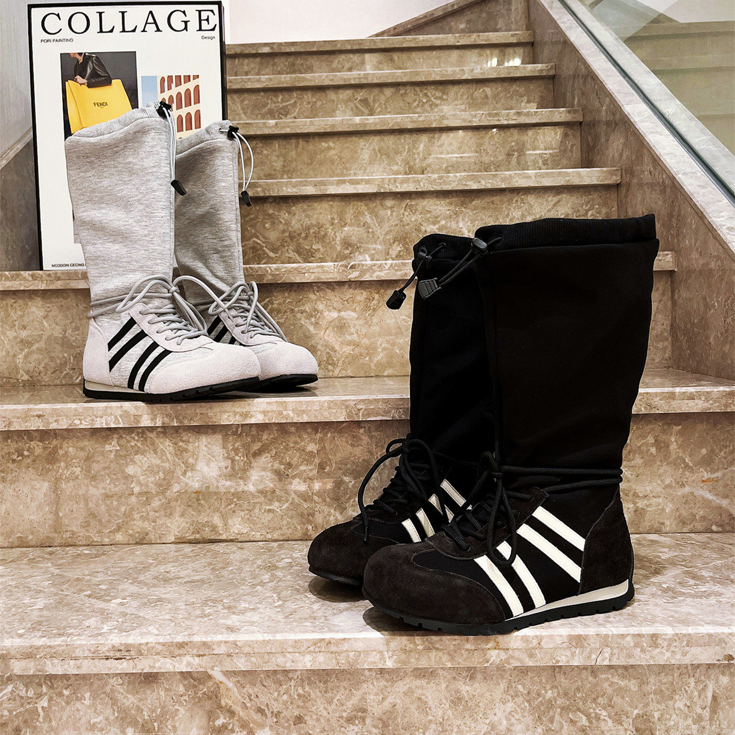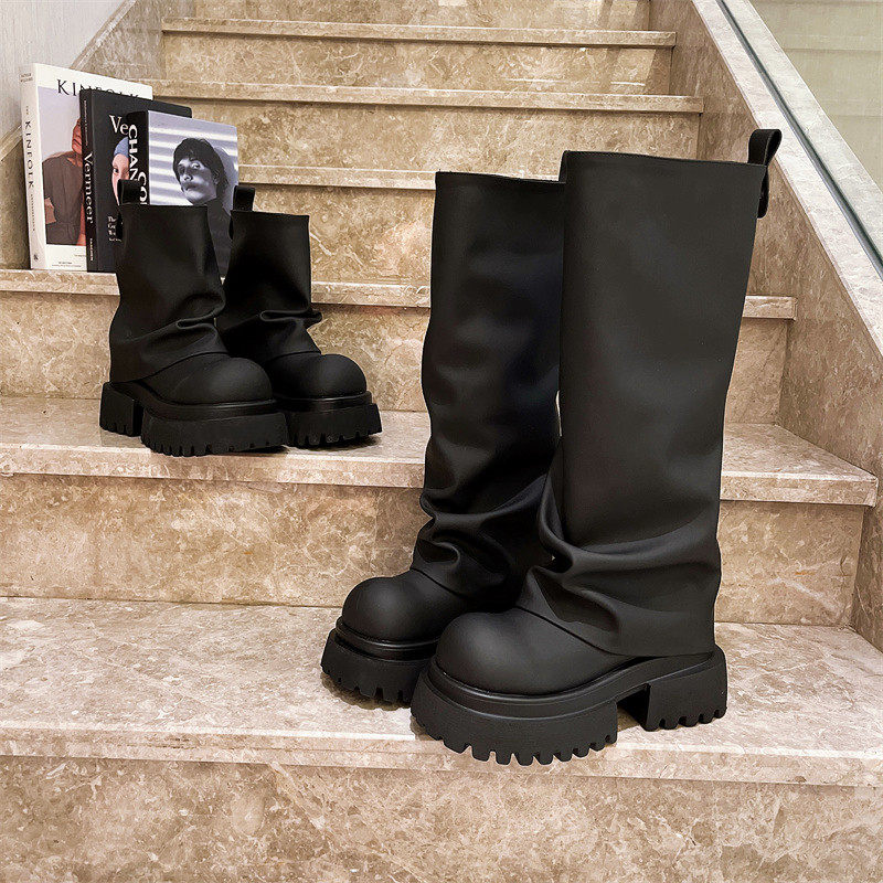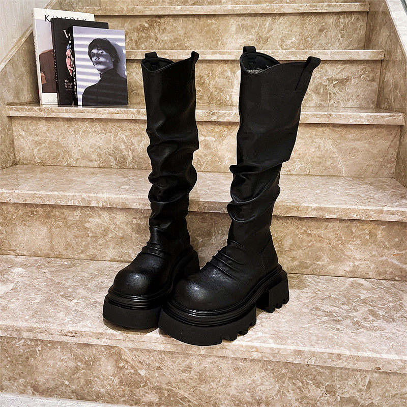 爱米高马丁靴褶皱堆堆靴不过膝靴机车靴厚底松糕长筒靴美拉德小个