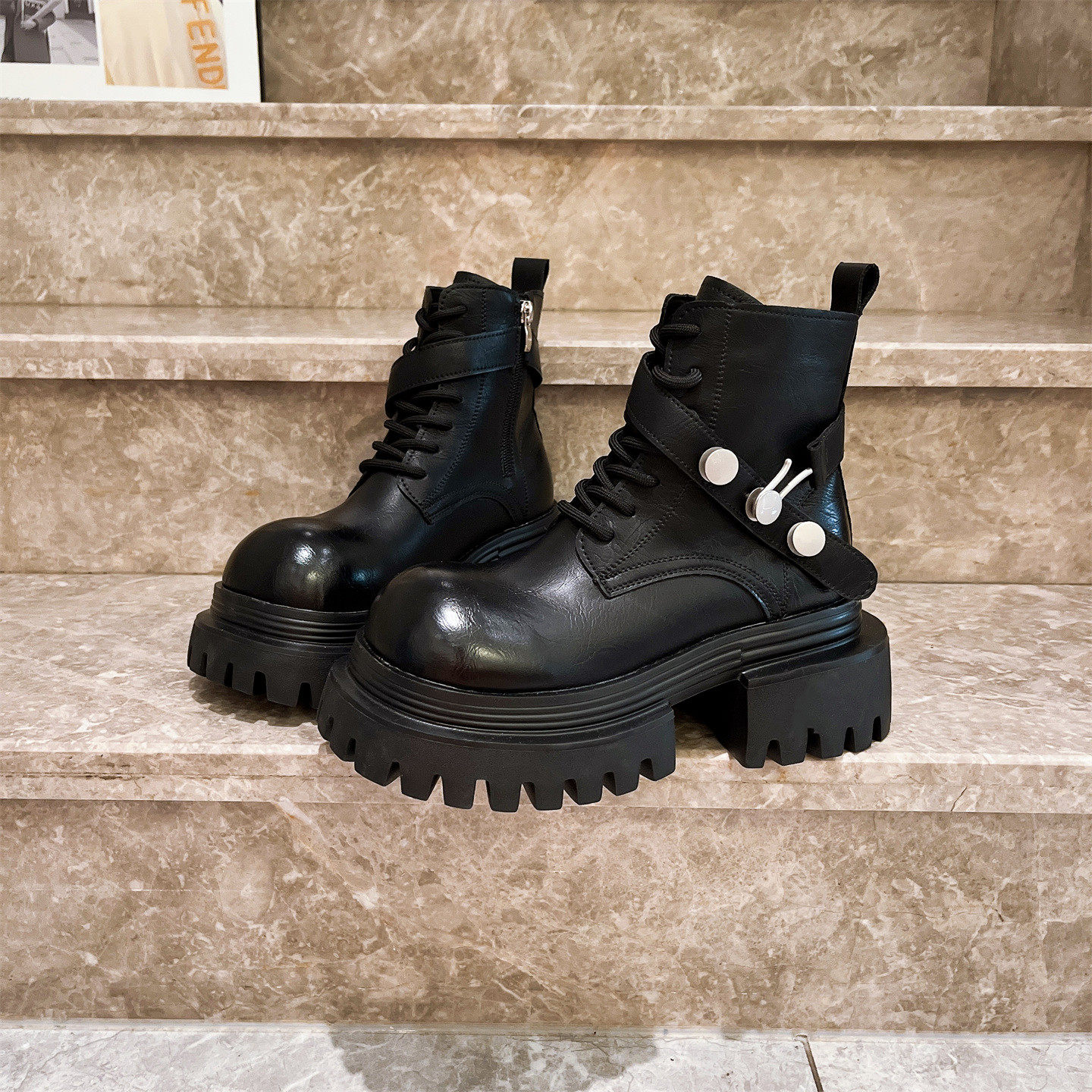 爱米高大头厚底松糕小个子10cm马丁靴机车靴短靴弹力瘦瘦靴加绒女