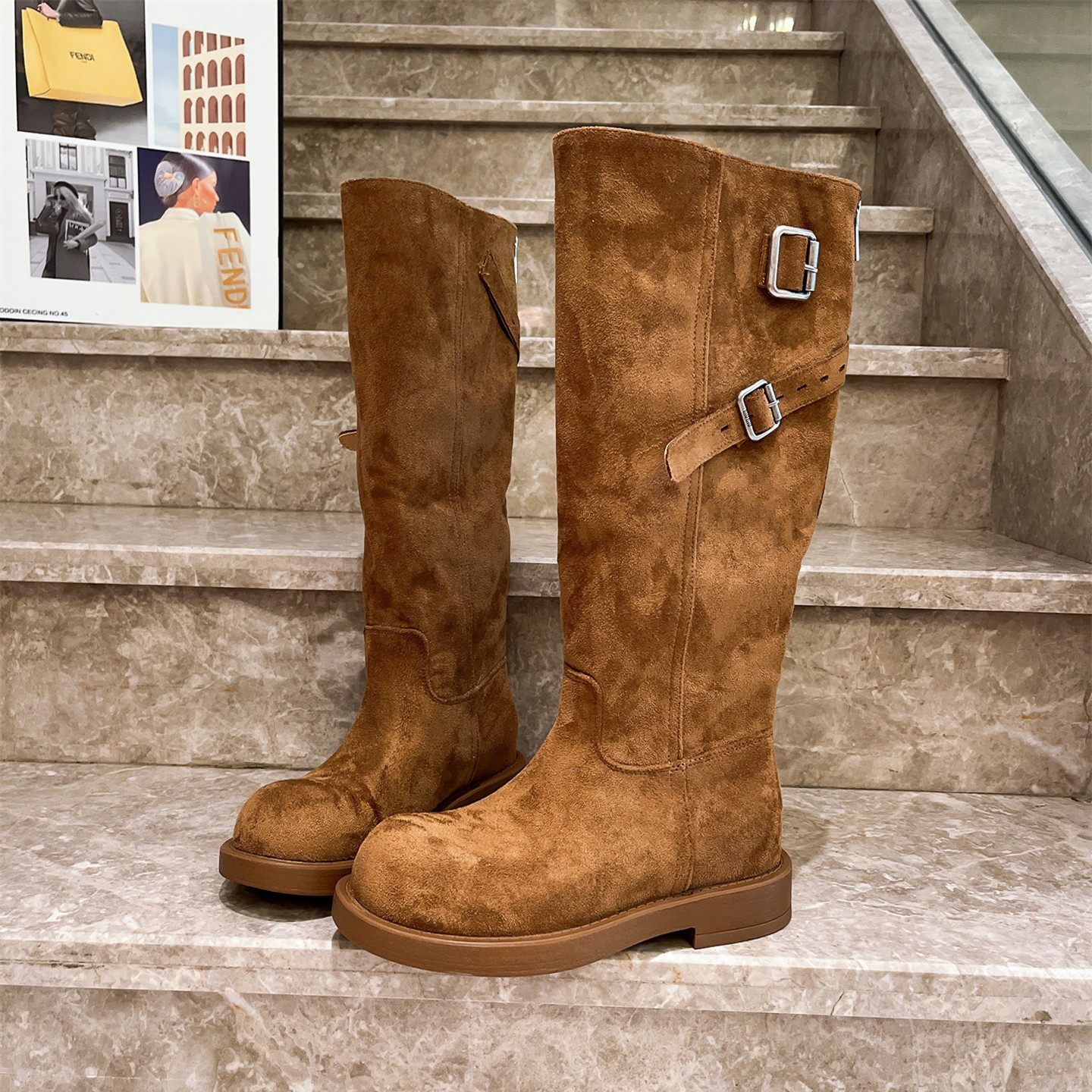 爱米高2025新款方头骑士靴褶皱堆堆靴西部牛仔辣妹长靴马丁靴女鞋