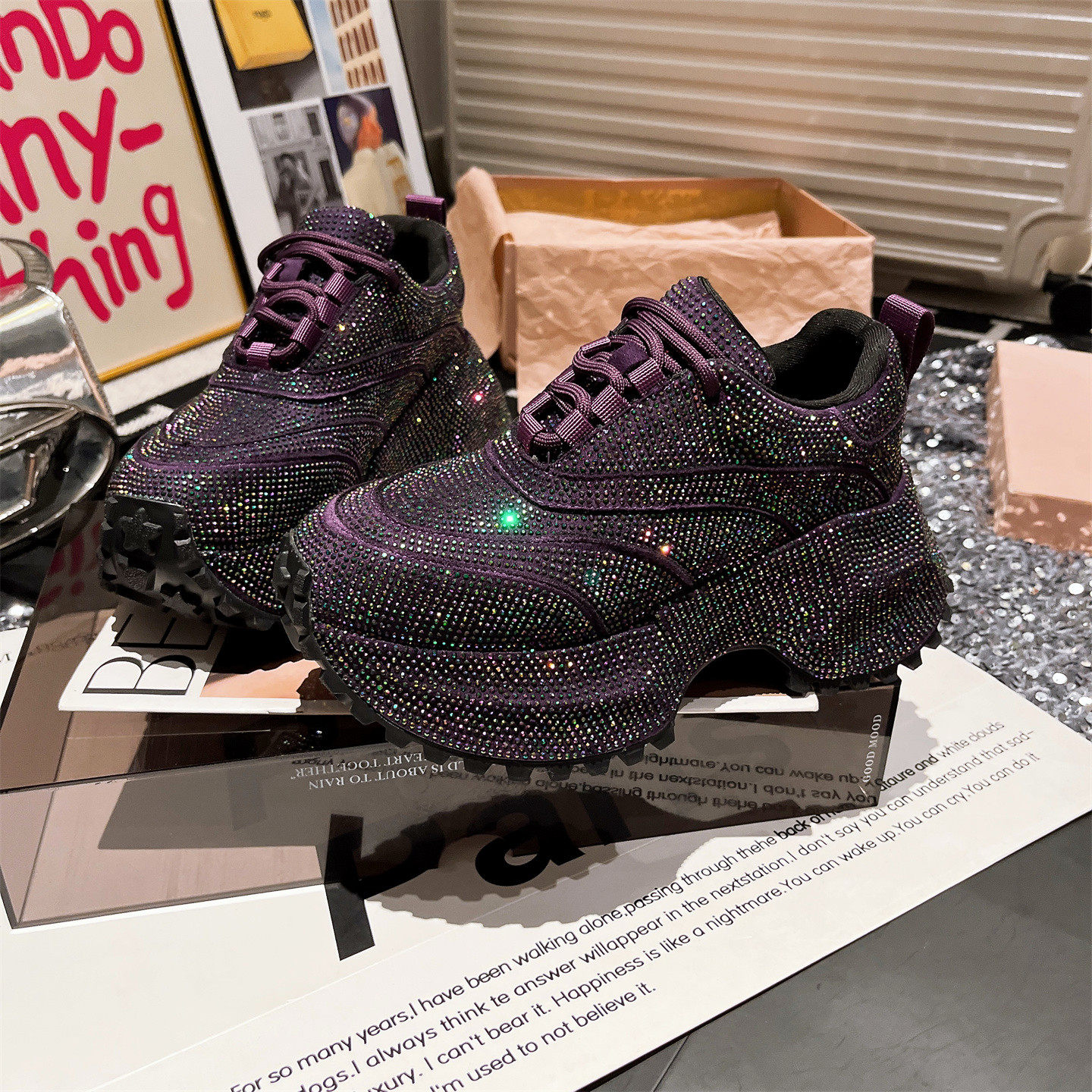 爱米高官方旗舰店老爹鞋女鞋ins超火水钻满钻满天星厚底松糕运动