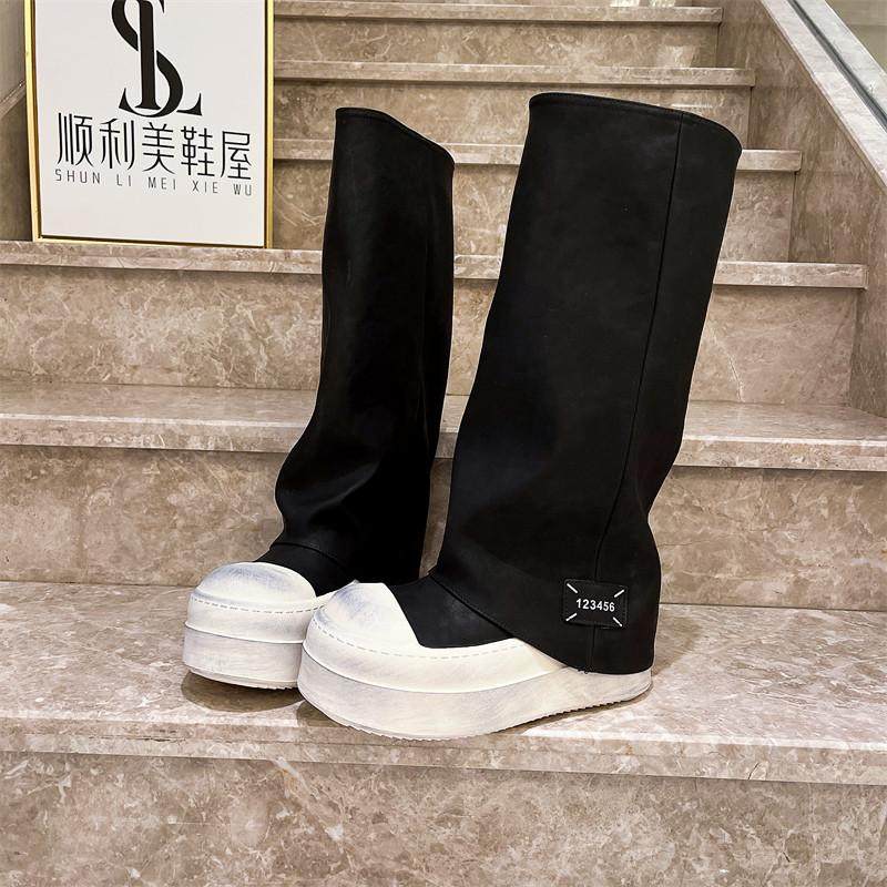 爱米高2025新款真皮大头拉链辣妹裤管靴厚底松糕长筒靴马丁靴机车