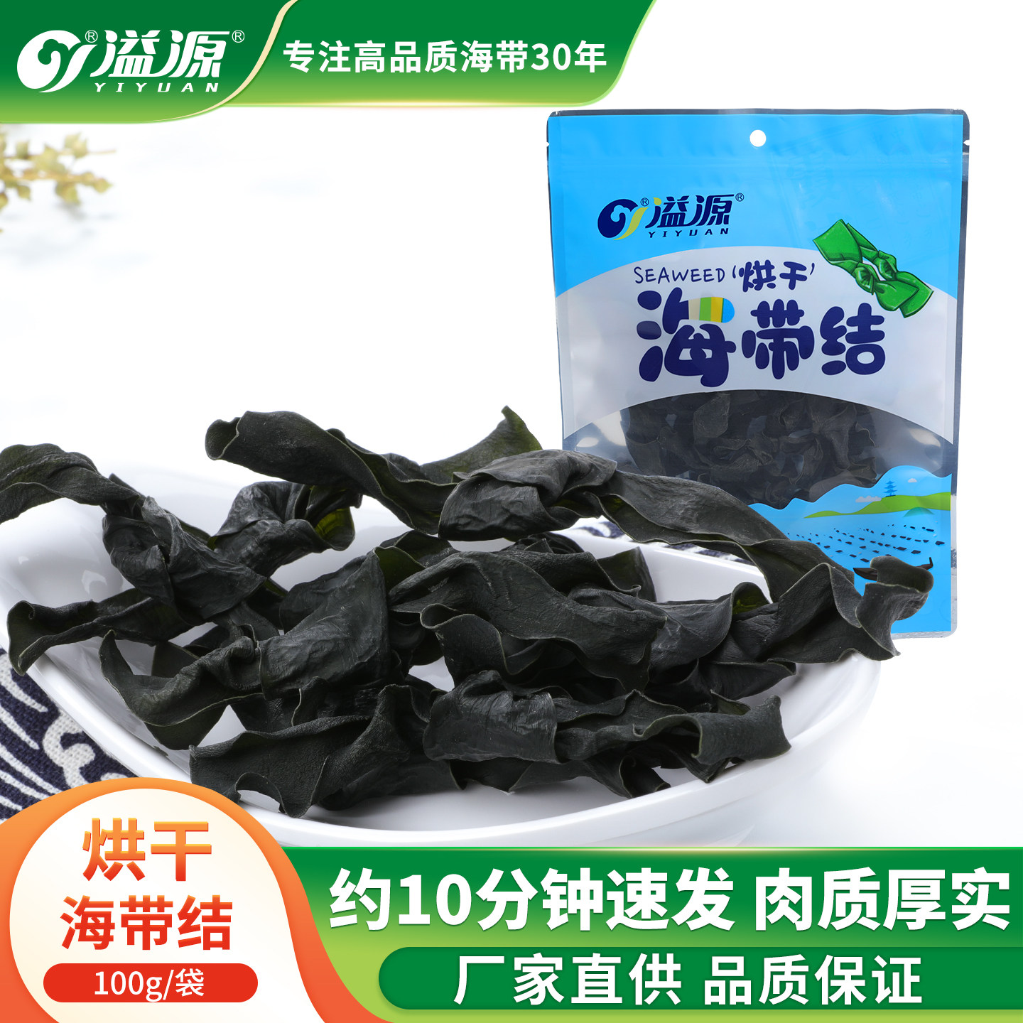 溢源烘干海带结100g海带干货非特级厚海带扣节新鲜凉拌菜煲汤火锅