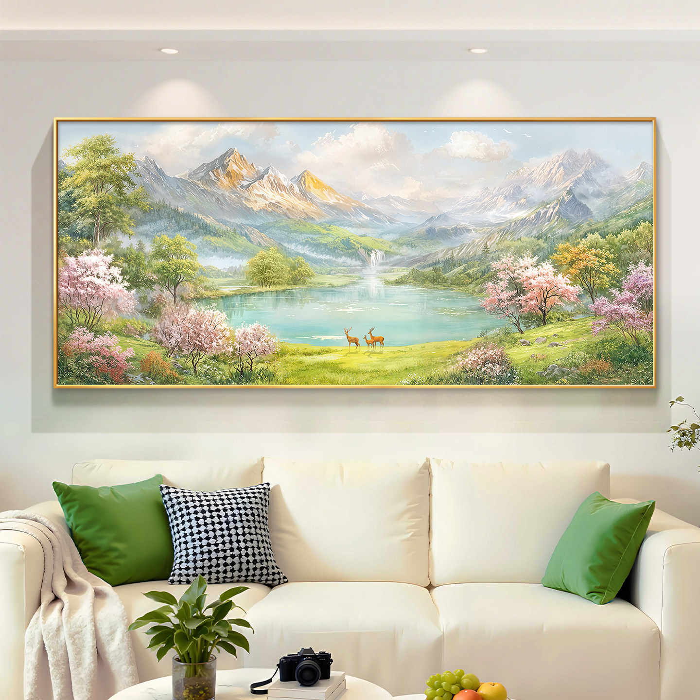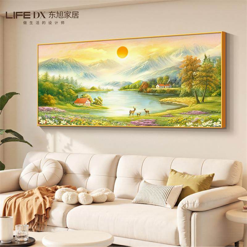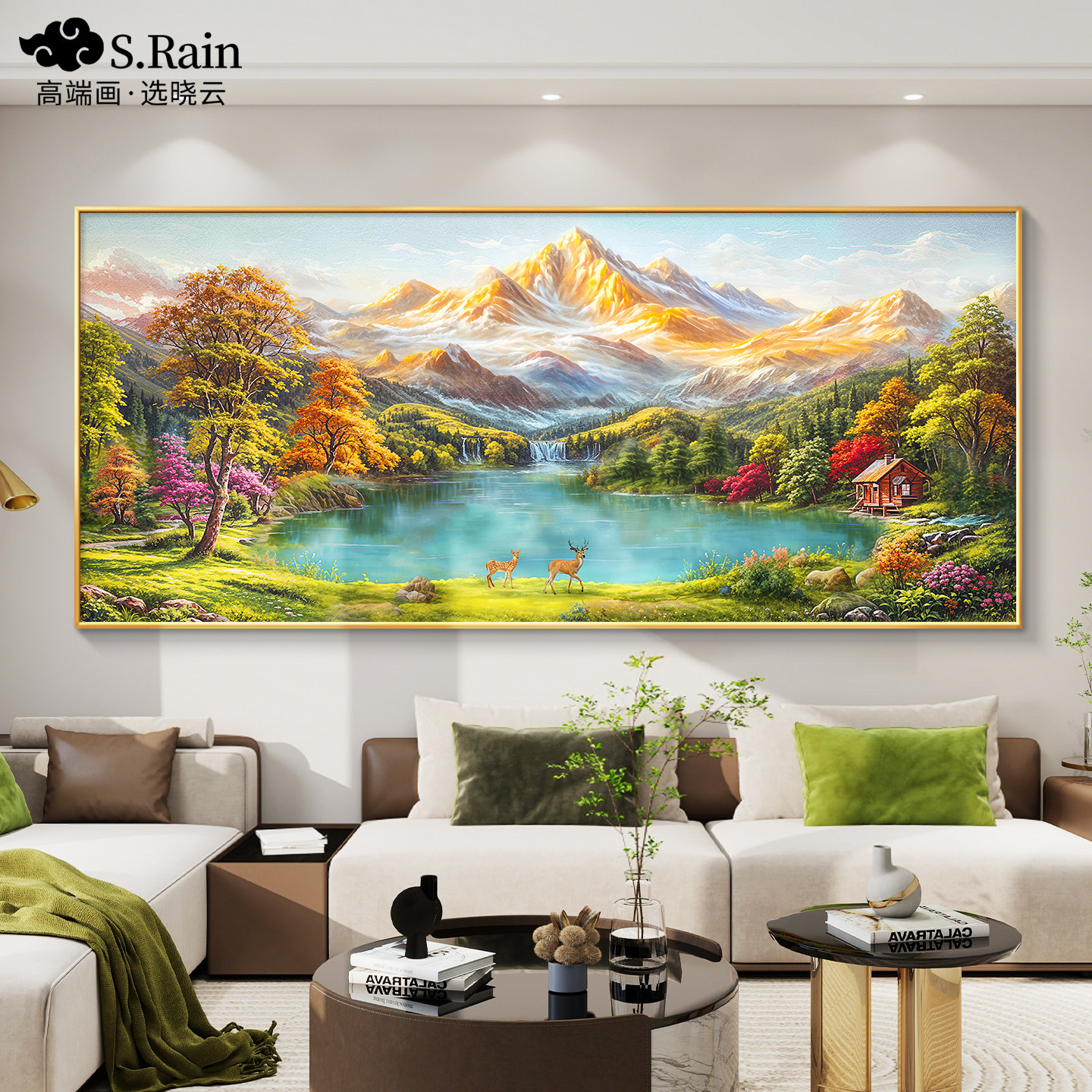 日照金山客厅装饰画横幅山水风景油画沙发背景墙挂画2026新款壁画