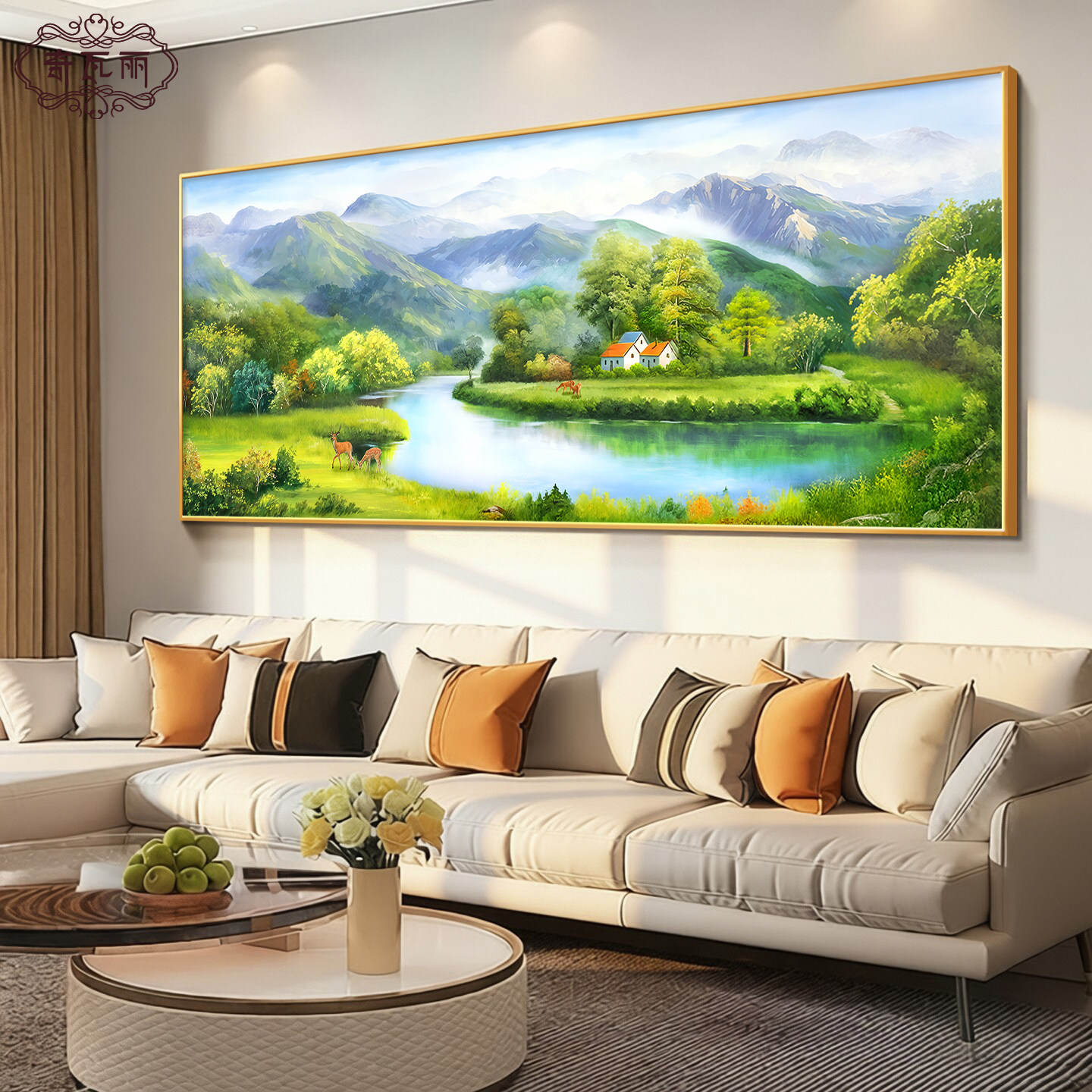 山水画手绘油画客厅挂画沙发背景墙装饰画2025新款壁画高级感欧式