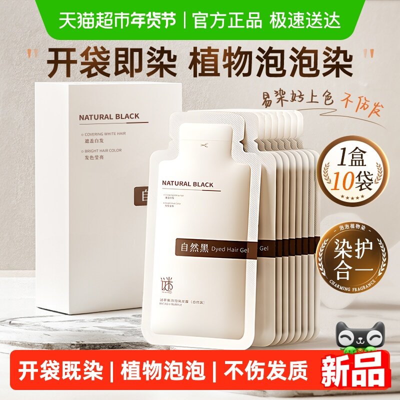 泡泡染发剂天然一洗黑植物纯在家染发膏官方旗舰店黑色遮白发棕色