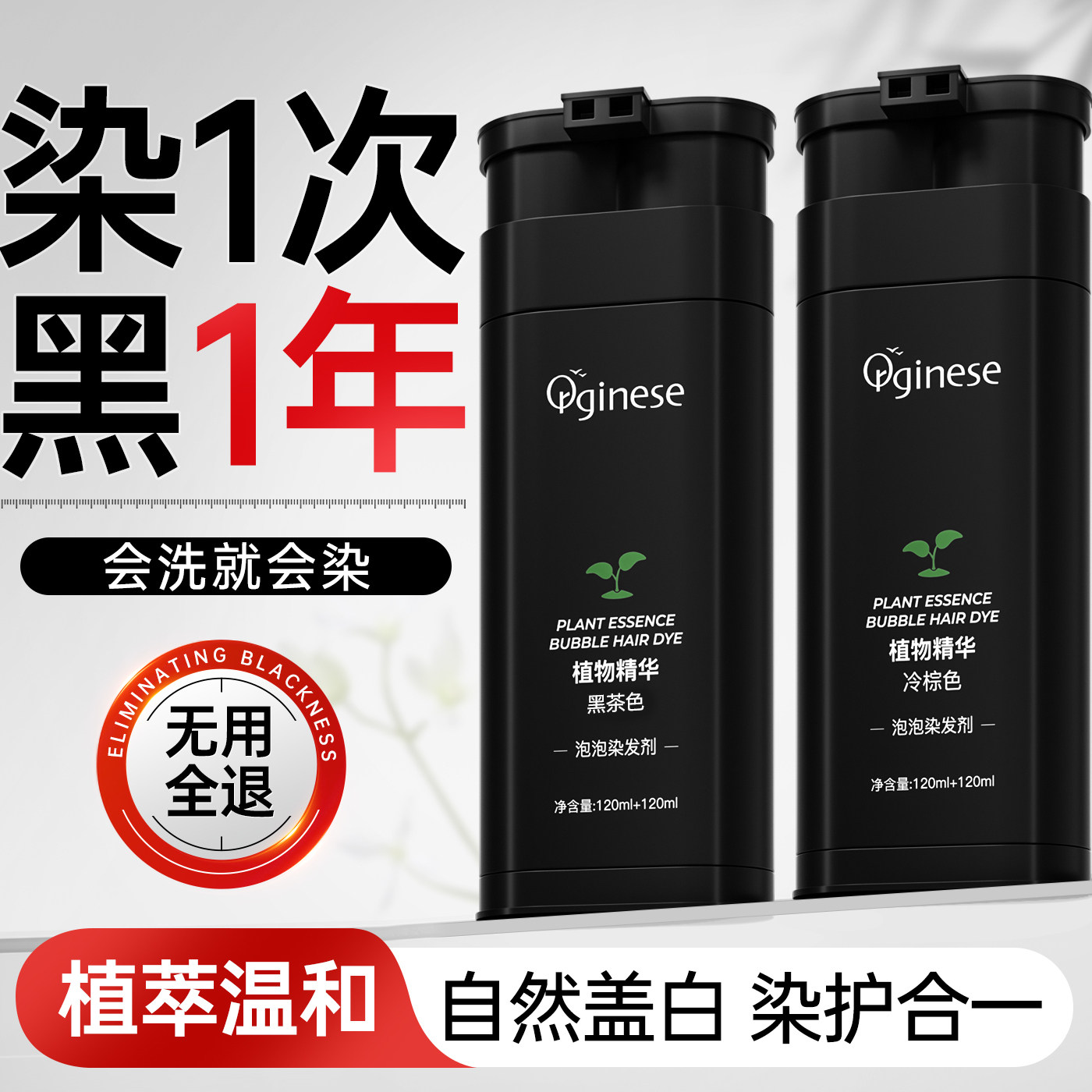 泡泡染发剂植物天然纯黑茶色正品品牌一洗黑遮白发自然黑纯染发膏