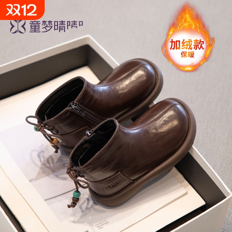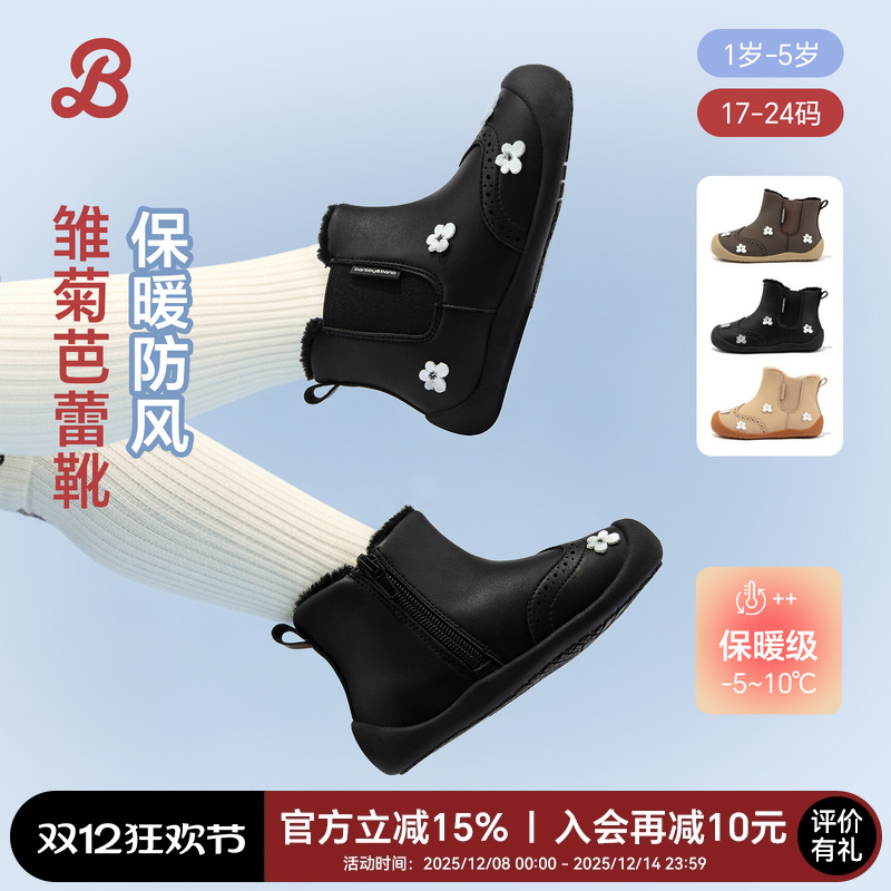巴布豆童鞋官方旗舰店女大童短靴加厚冬鞋2025新款儿童加绒马丁靴