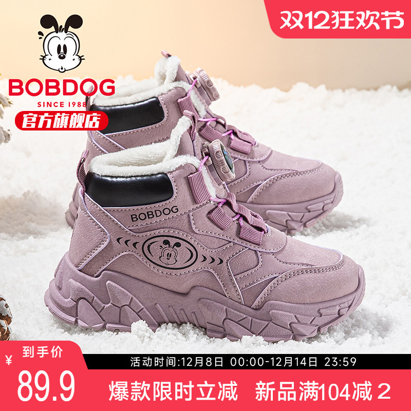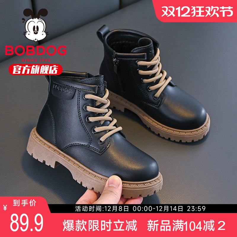 巴布豆童鞋儿童马丁靴冬季加绒棉鞋短靴中大童冬鞋皮靴男童鞋子女