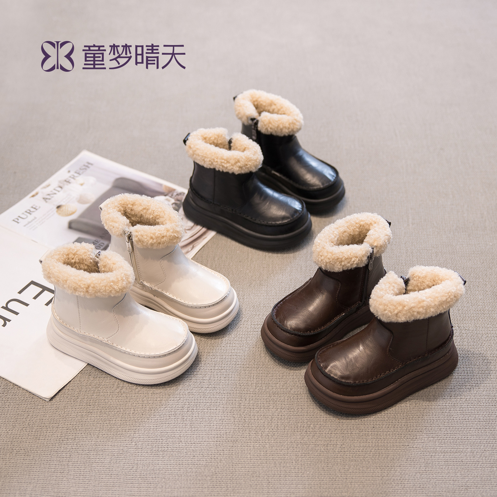 童梦晴天女童短靴加绒雪地靴2025新款冬季儿童马丁靴女宝棉鞋冬鞋