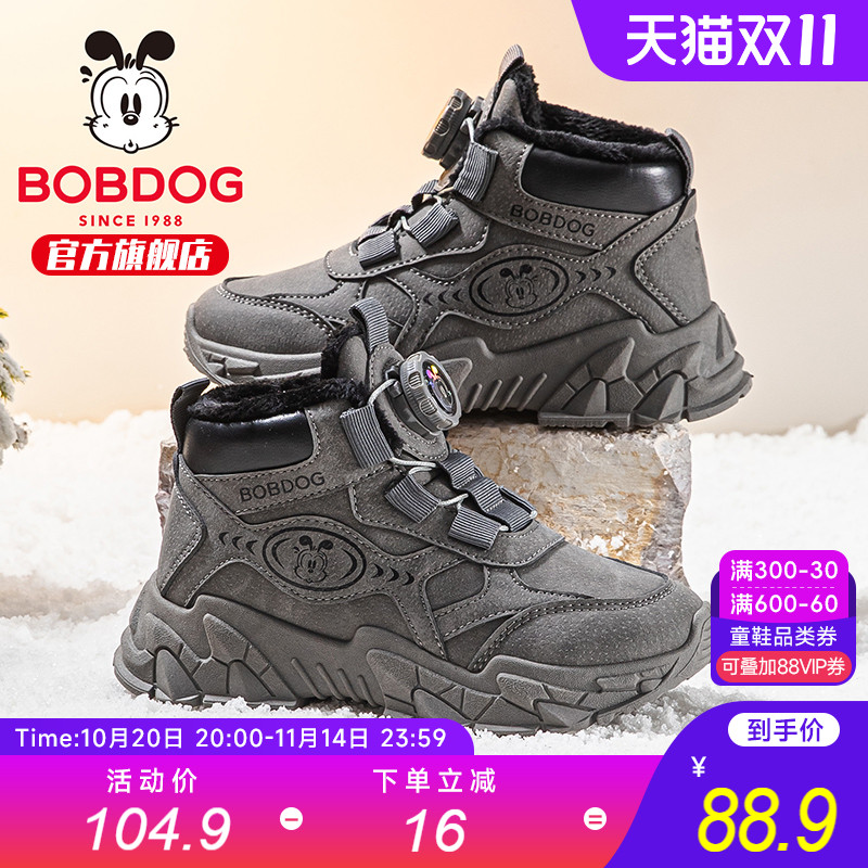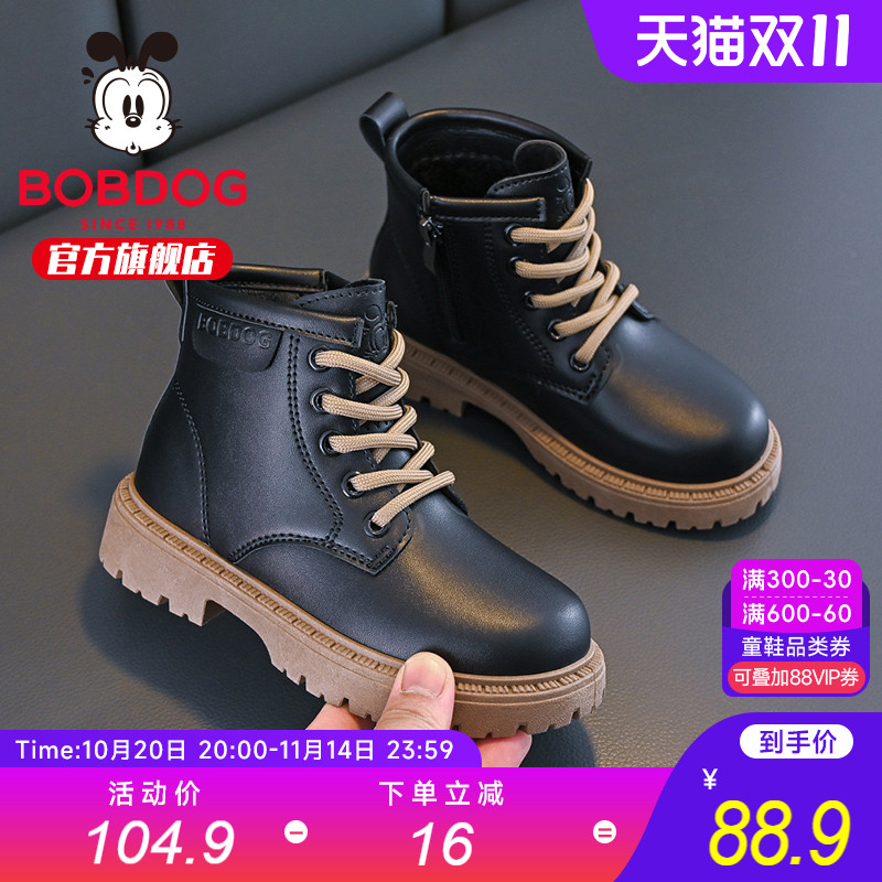 巴布豆童鞋儿童马丁靴冬季加绒加厚短靴中大童冬鞋皮靴男童棉鞋女
