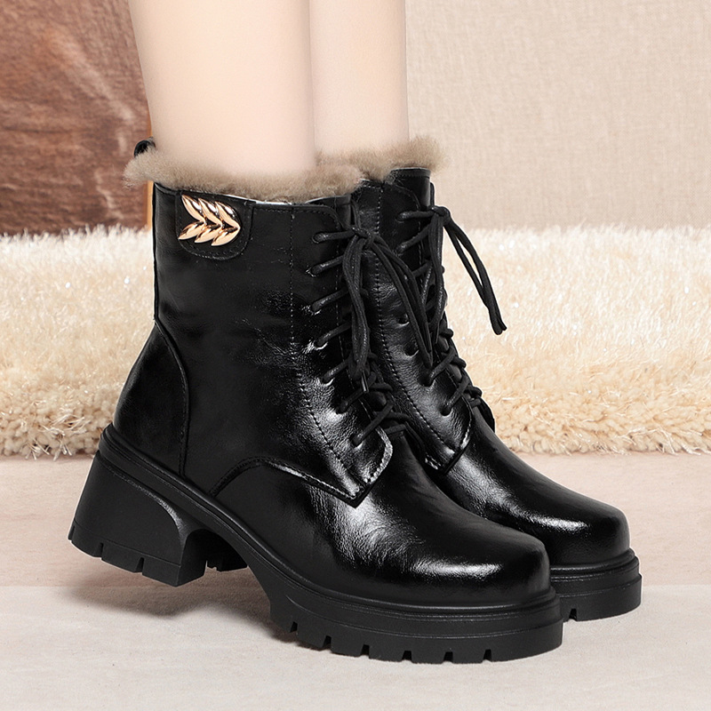 - 真皮低跟女靴
