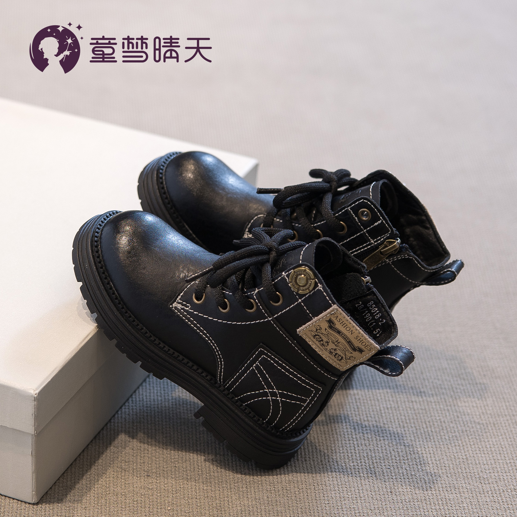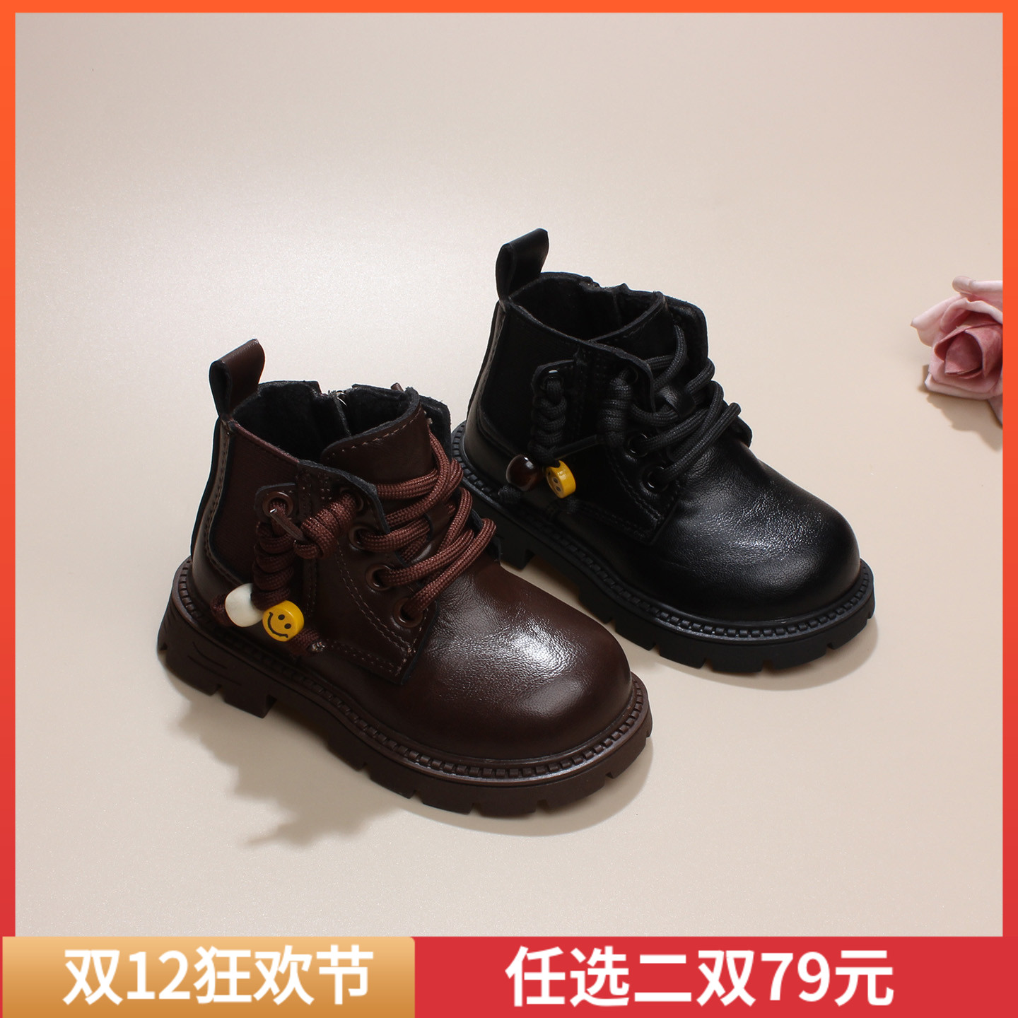 小步点宝宝马丁靴冬鞋儿童靴子女童皮靴软底男童鞋子加绒棉靴短靴