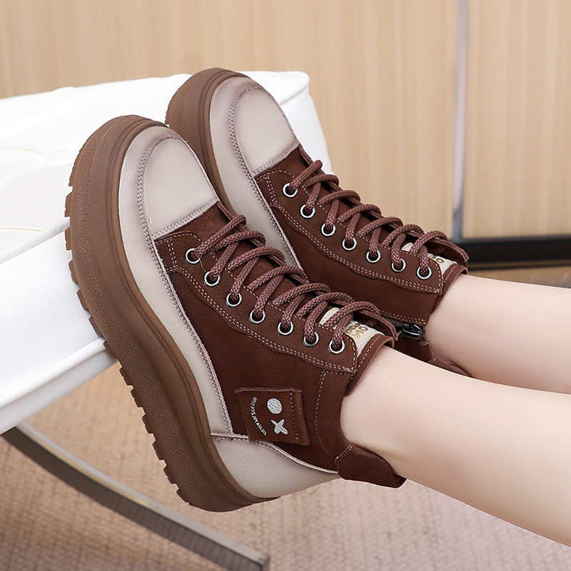 真皮高帮女鞋厚底短靴女2025新款秋冬鞋子休闲皮鞋加绒松糕马丁靴