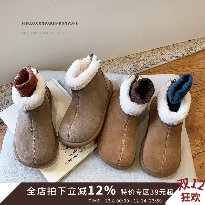 韩版儿童马丁靴冬季新款女童棉靴加绒短靴男童二棉鞋冬鞋宝宝靴子