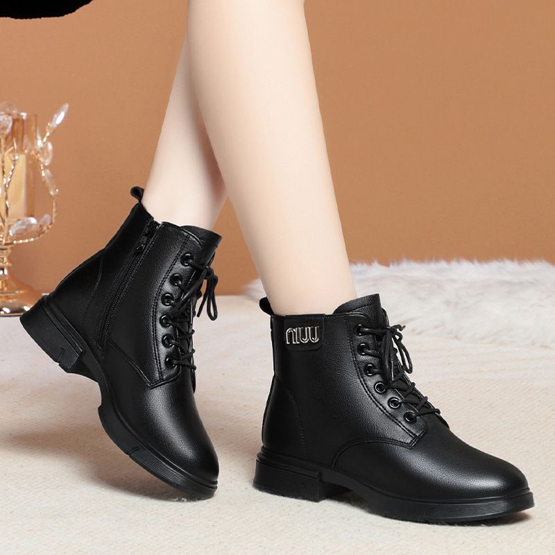 靴子女马丁靴2025新款棉鞋低跟短靴中老年冬鞋妈妈鞋秋冬皮鞋