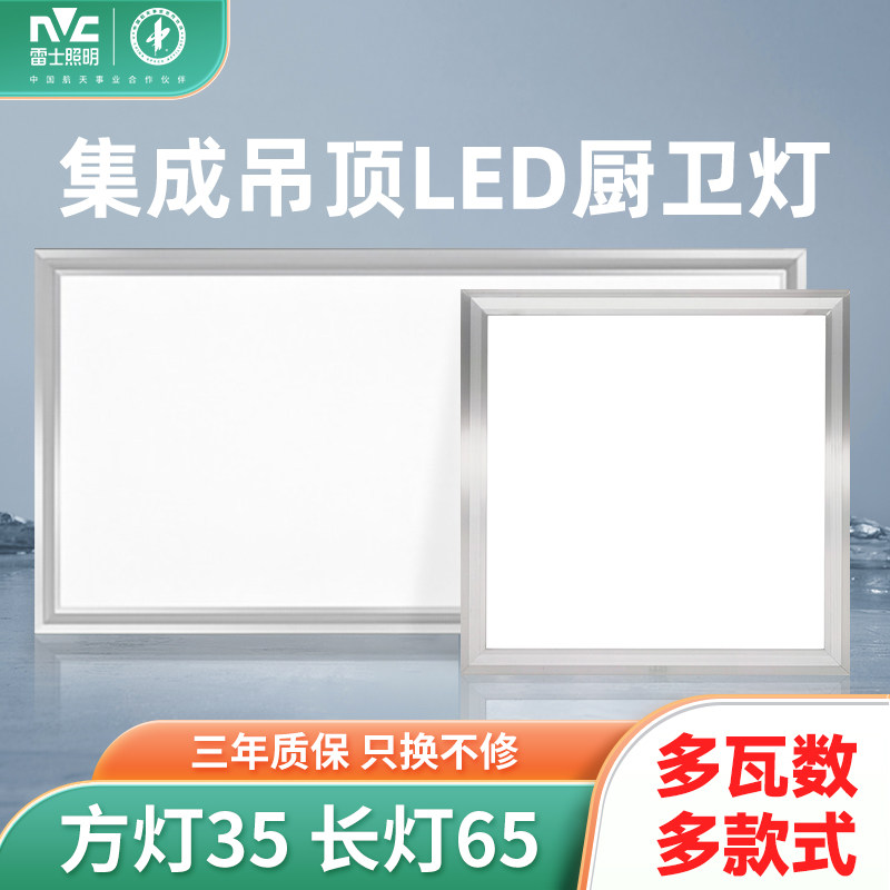 雷士照明集成吊顶灯嵌入式厨房平板灯 led铝扣板卫生间面板厨卫灯