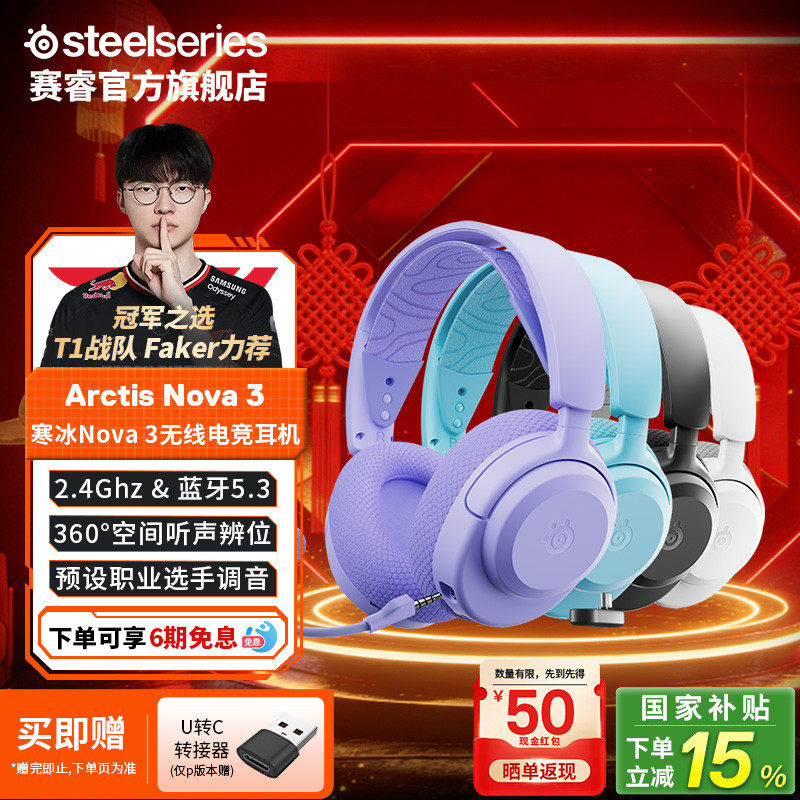 【政府补贴15%】SteelSeries赛睿Arctis Nova3无线电竞耳机头戴式