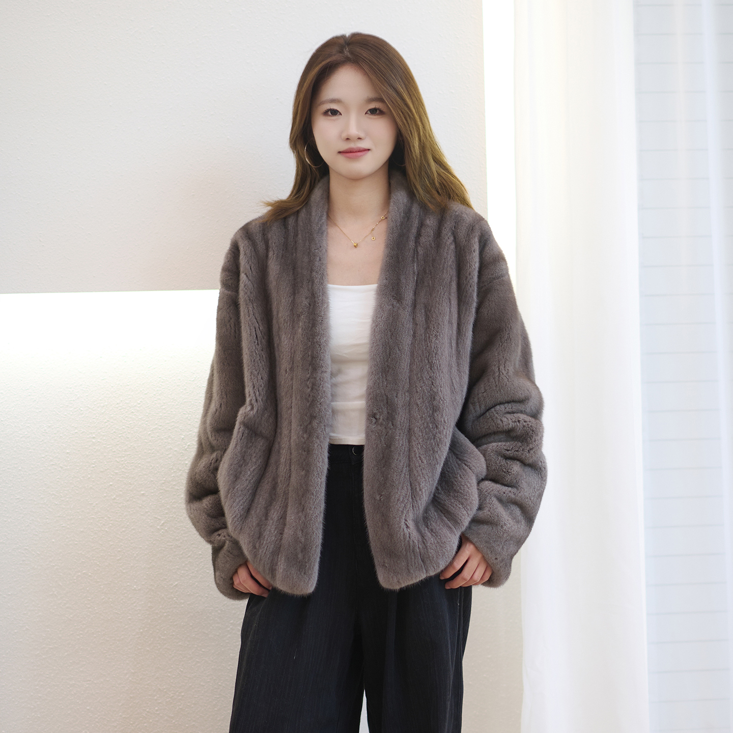 “利落十字”进口天鹅绒水貂皮草女整貂短款外套 貂皮大衣冬横排