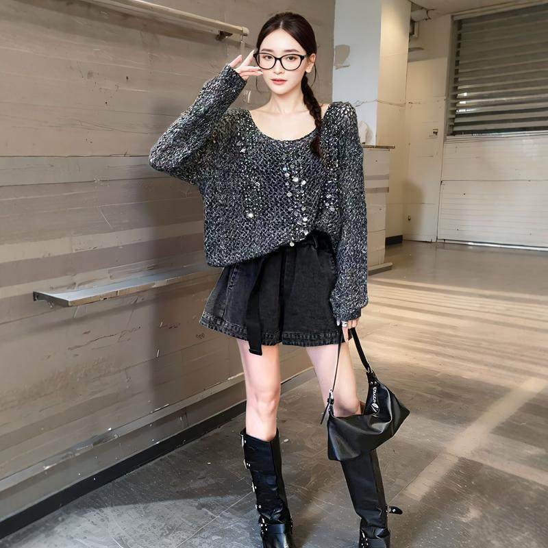 - 露肩上衣长袖女 韩版 宽松