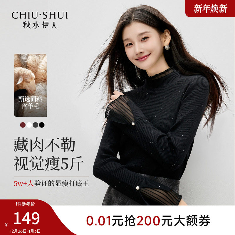 - 黑色高领蕾丝打底衫