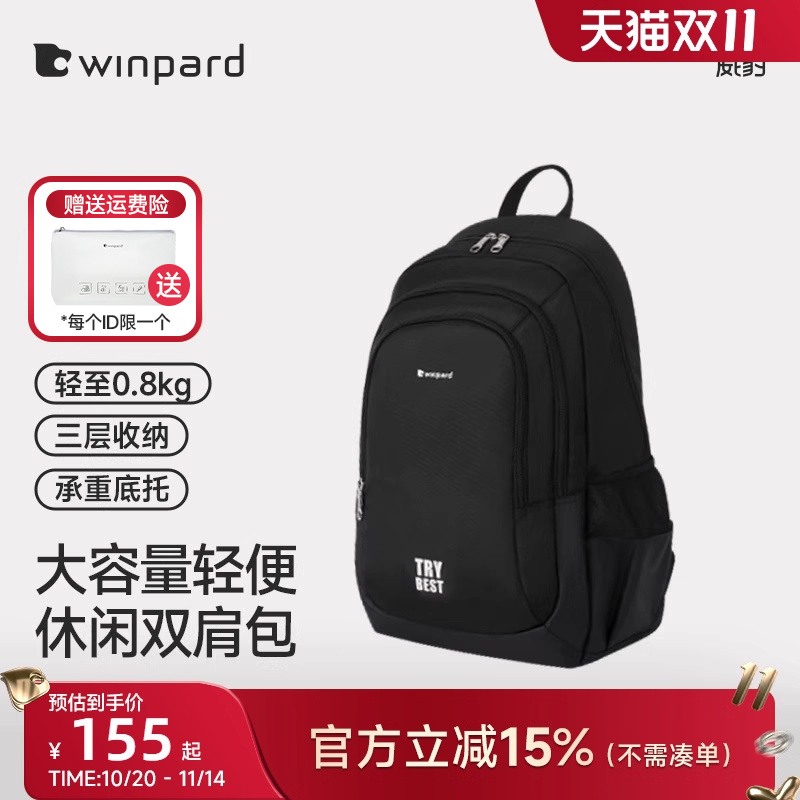 WINPARD威豹书包男高中生大容量轻便休闲旅行背包双肩包男大学生