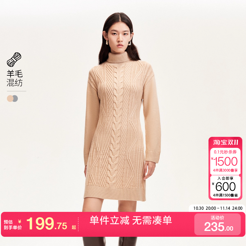 绫致Vero Moda连衣裙女秋冬新绞花针织高领毛衣连衣裙休闲百搭