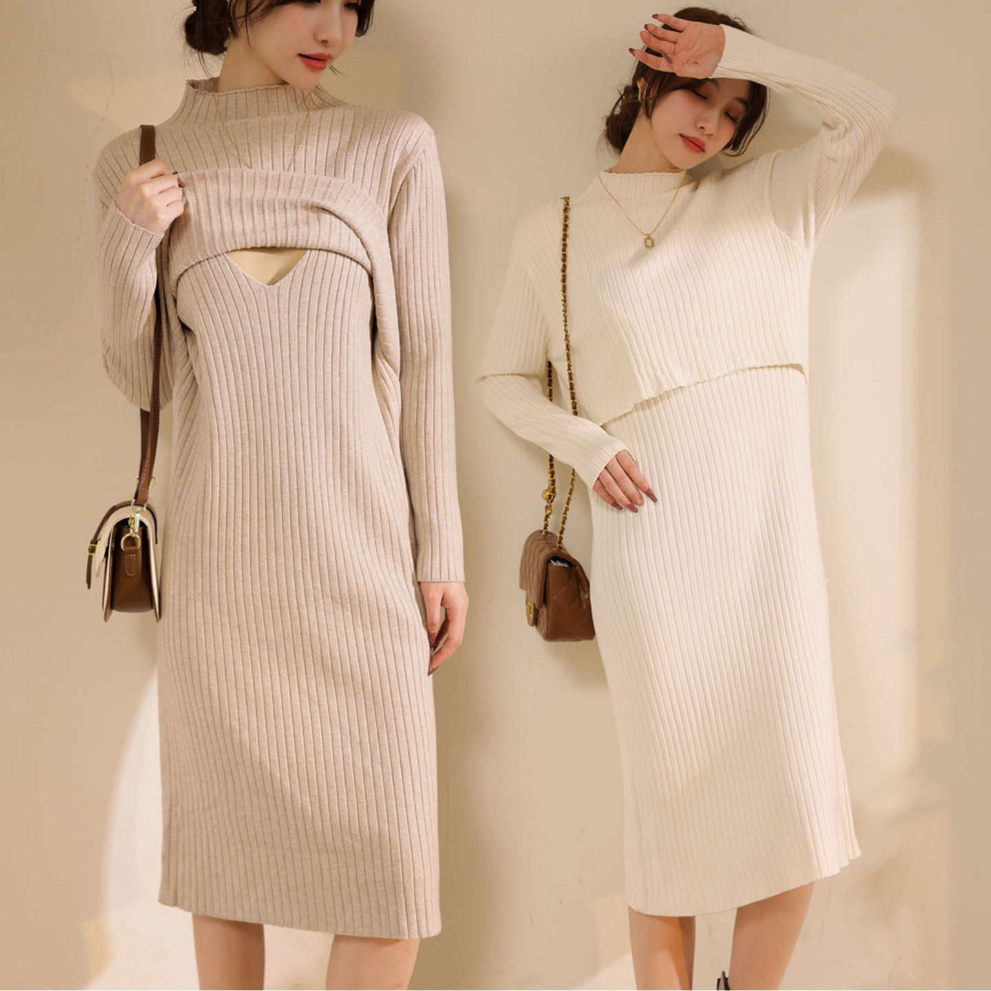 高领毛衣连衣裙哺乳期裙子外出辣妈加厚潮妈打底冬季内搭秋冬装女