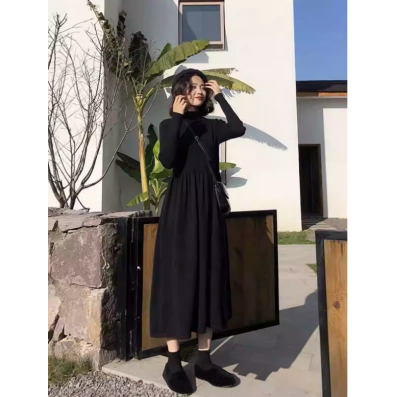 【郭九九呢】直筒宽松半高领毛衣针织连衣裙女秋冬新款打底长裙子