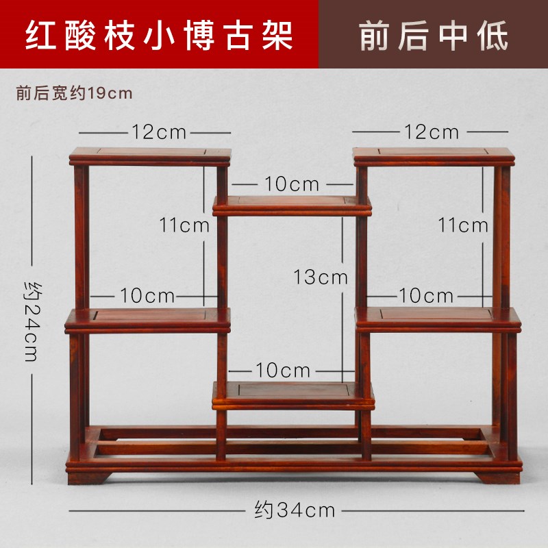 鸡翅木紫砂壶架子茶具架小博古架置物架实木高低小多宝Z阁摆件现