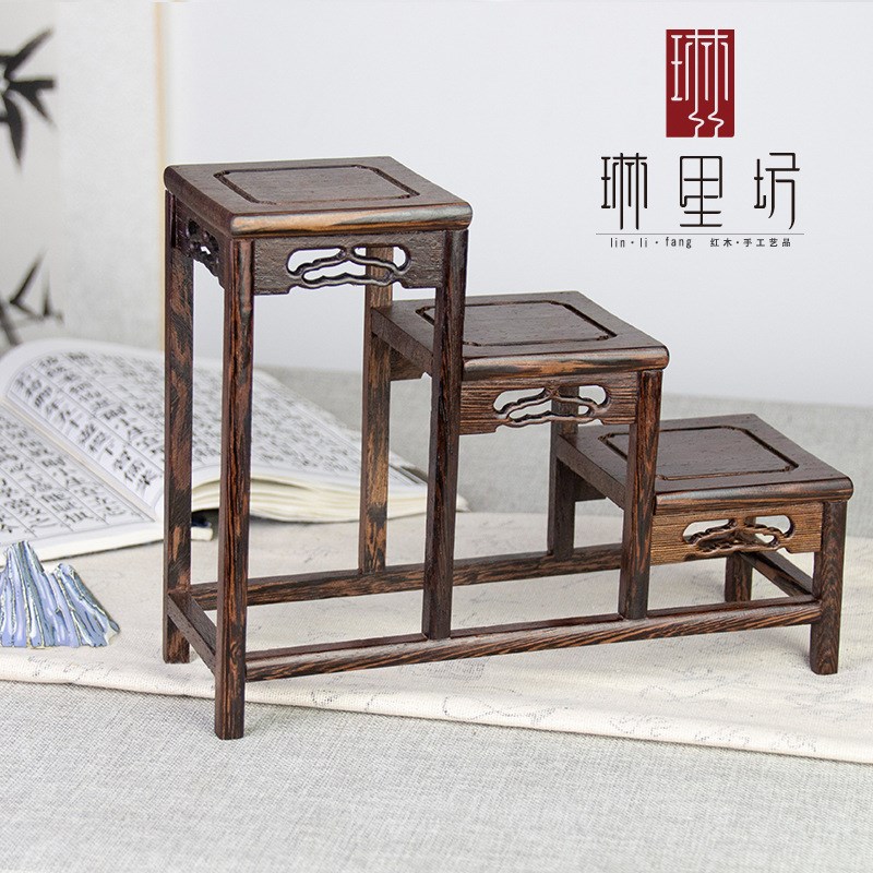 红木黑檀紫光檀实木多宝格茶具架小博古架摆件底座茶具奇石架底座