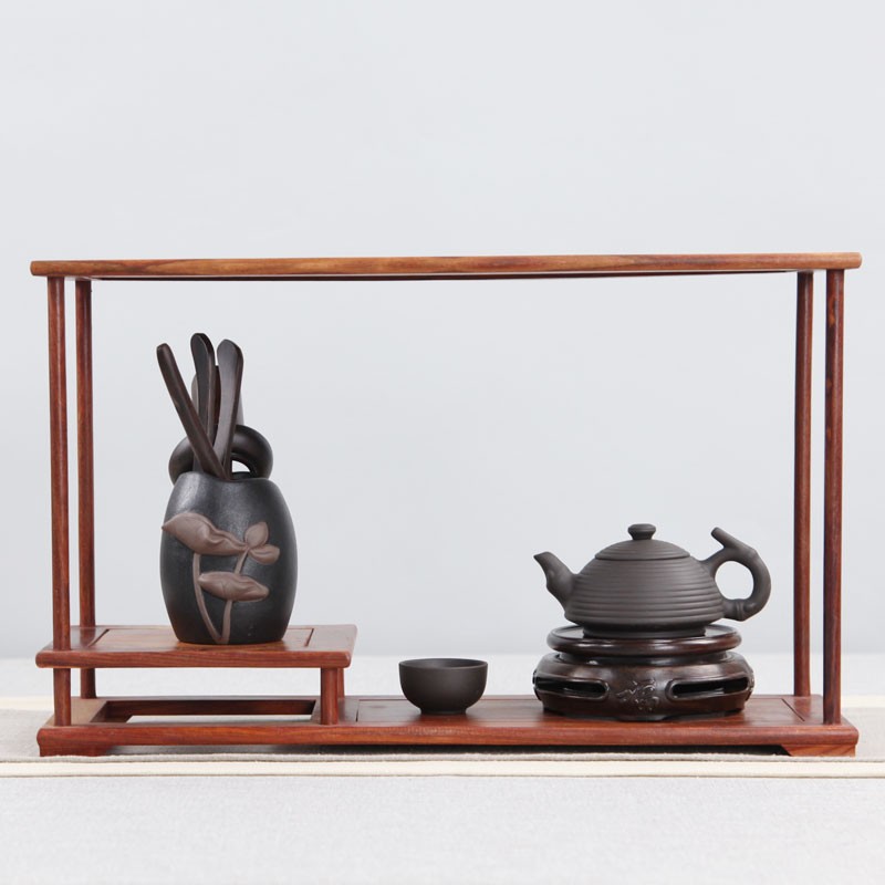 容山堂颐阁 实木茶杯架茶具架小博古架鸡翅木茶宠托架紫砂茶壶架