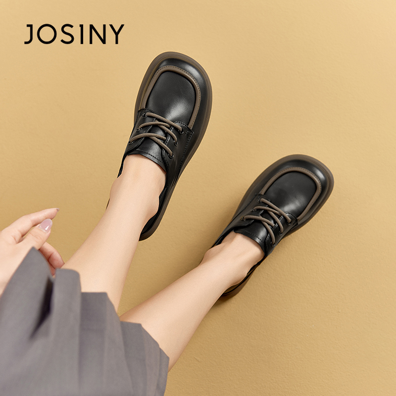 Josiny/卓诗尼新款时尚百搭厚底增高乐福鞋休闲板鞋凉鞋系带单鞋2