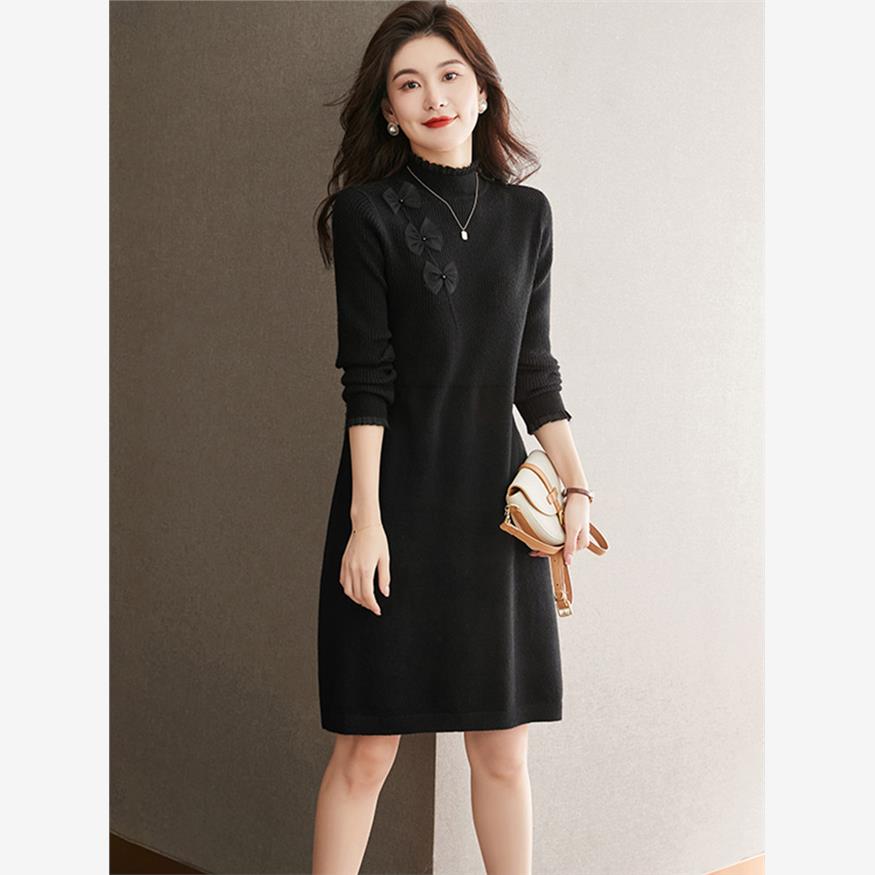 冬季打底针织连衣裙女秋冬款内搭小个子中长款冬天配大衣毛衣裙子