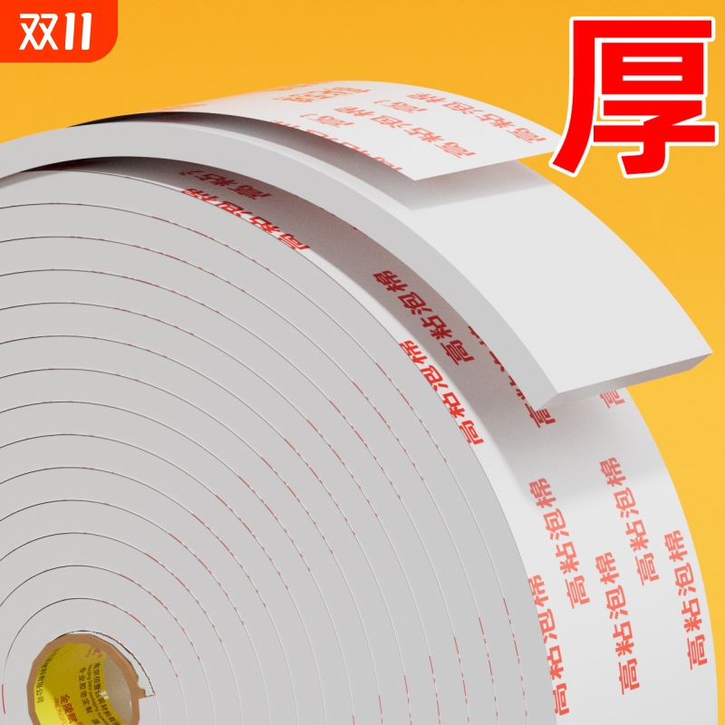 泡沫双面胶强力高粘度超粘白色固定墙面加厚款泡棉胶带缓冲广告牌相框防水胶条批发学生用手工海绵双面胶
