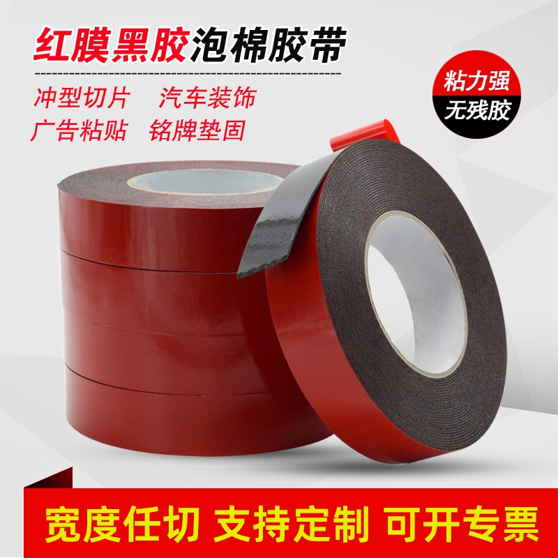 红膜黑色海绵双面胶无痕双面胶带汽车专用加厚泡绵胶条不锈钢强力胶条高粘度双面泡沫胶墙面胶贴广告布双面胶