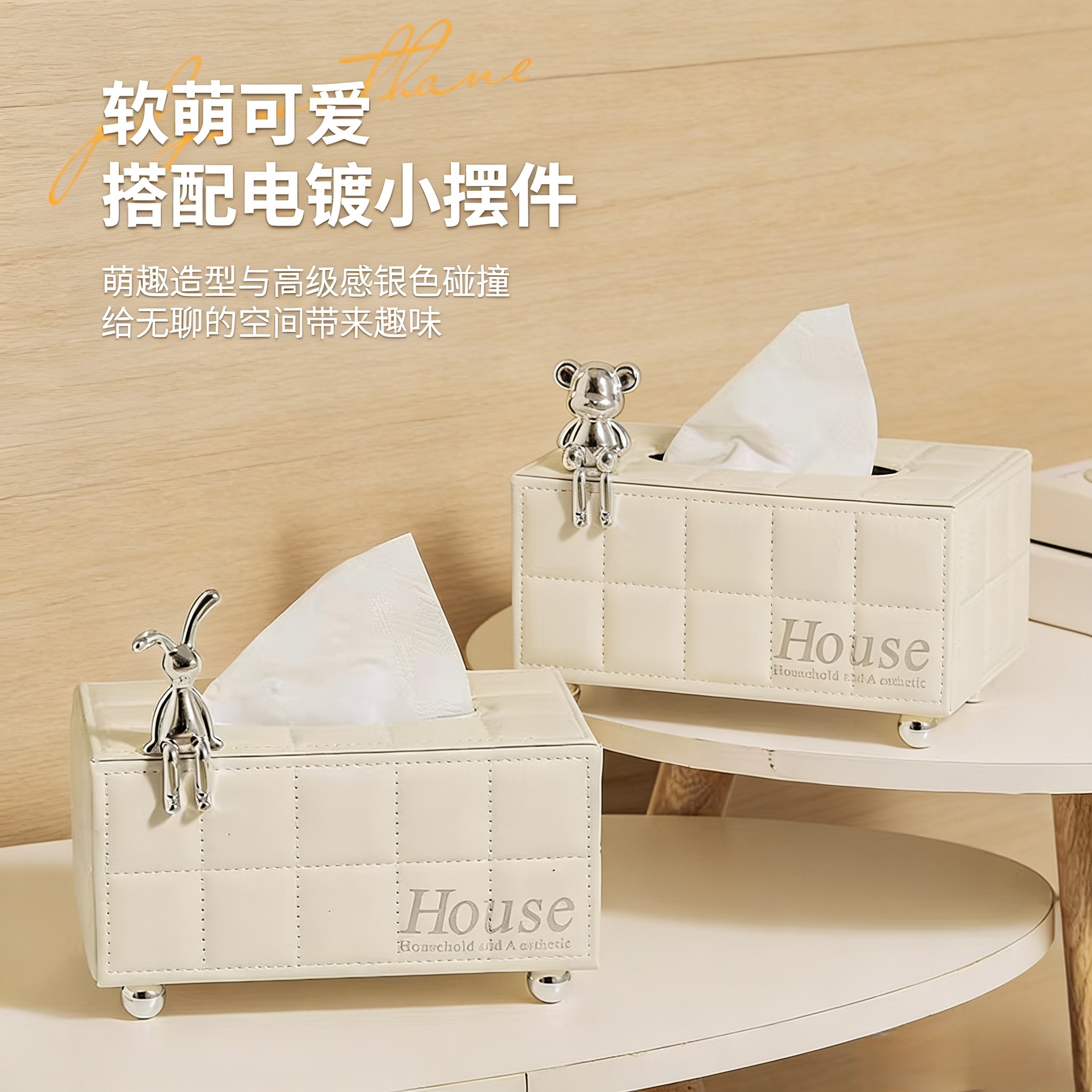 奶油风纸巾盒客厅高档轻奢抽纸盒家用遥控器收纳盒创意茶几纸抽盒