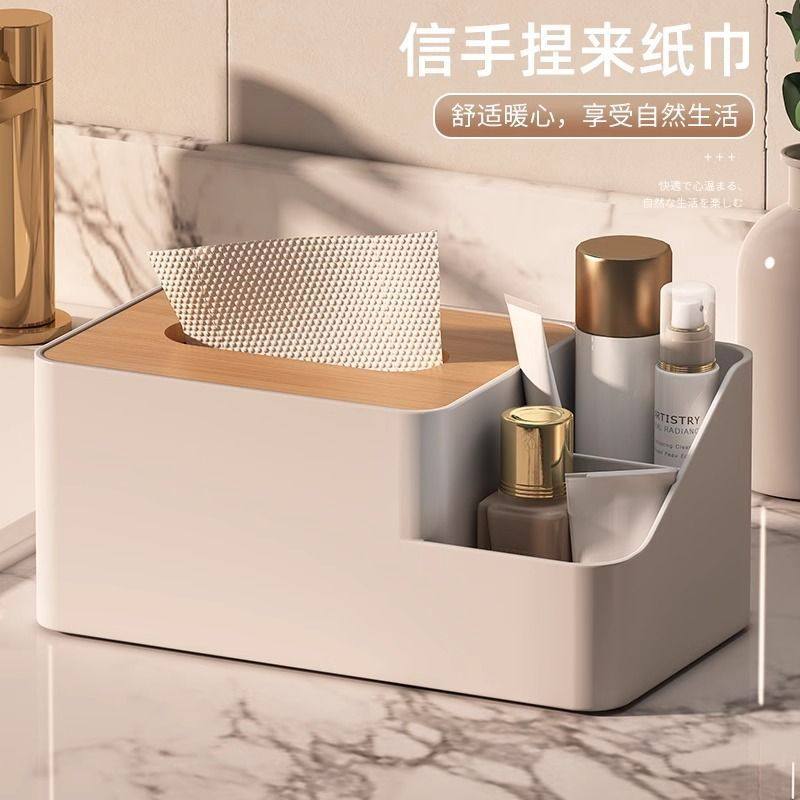 多功能纸巾盒轻奢桌面遥控器收纳盒创意客厅高级感家用卧室抽纸盒