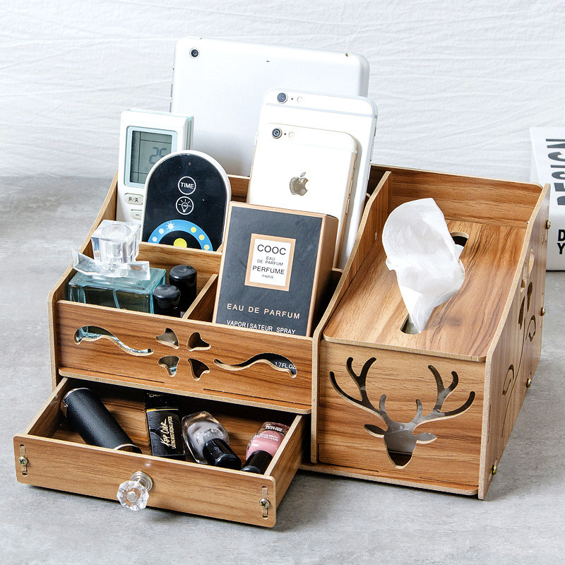 多功能家用纸巾盒客厅茶几遥控器收纳盒创意桌面收纳盒抽纸盒组合
