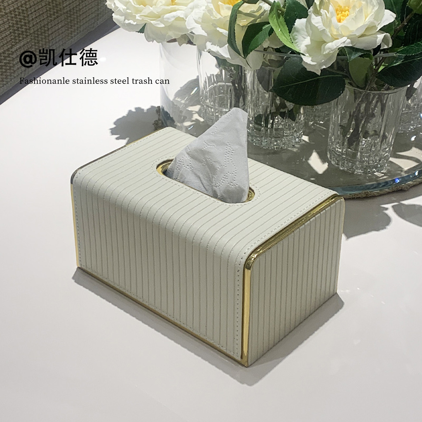 现代简约竹编纹皮质遥控器收纳盒创意样板间酒店纸巾盒托盘垃圾桶