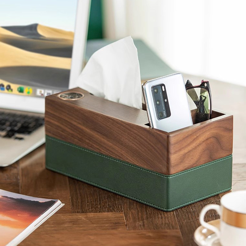 胡桃木纸巾盒客厅遥控器收纳盒创意茶几轻奢卧室家用餐巾纸抽纸盒