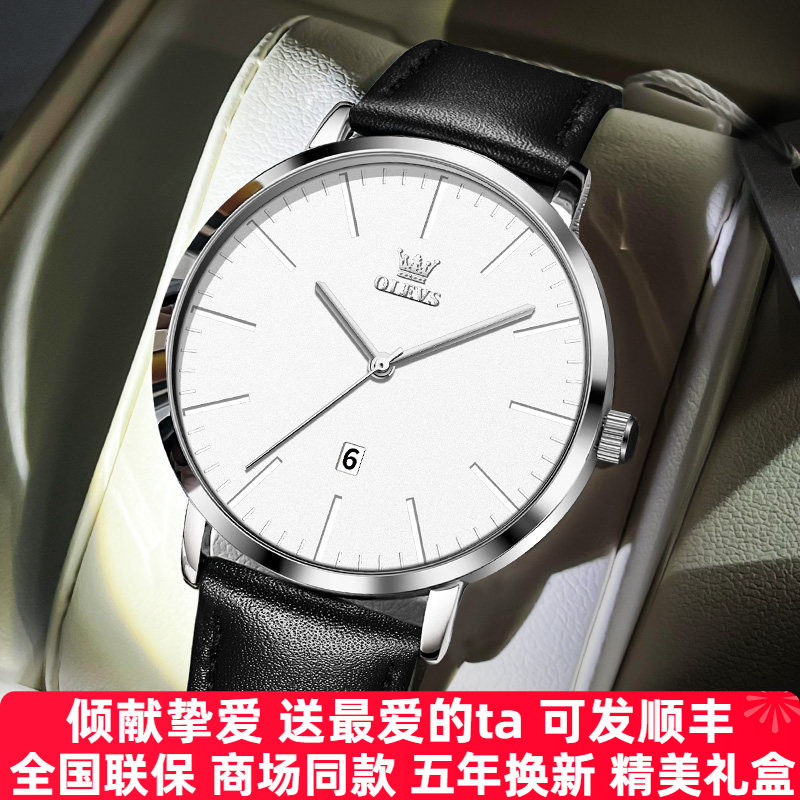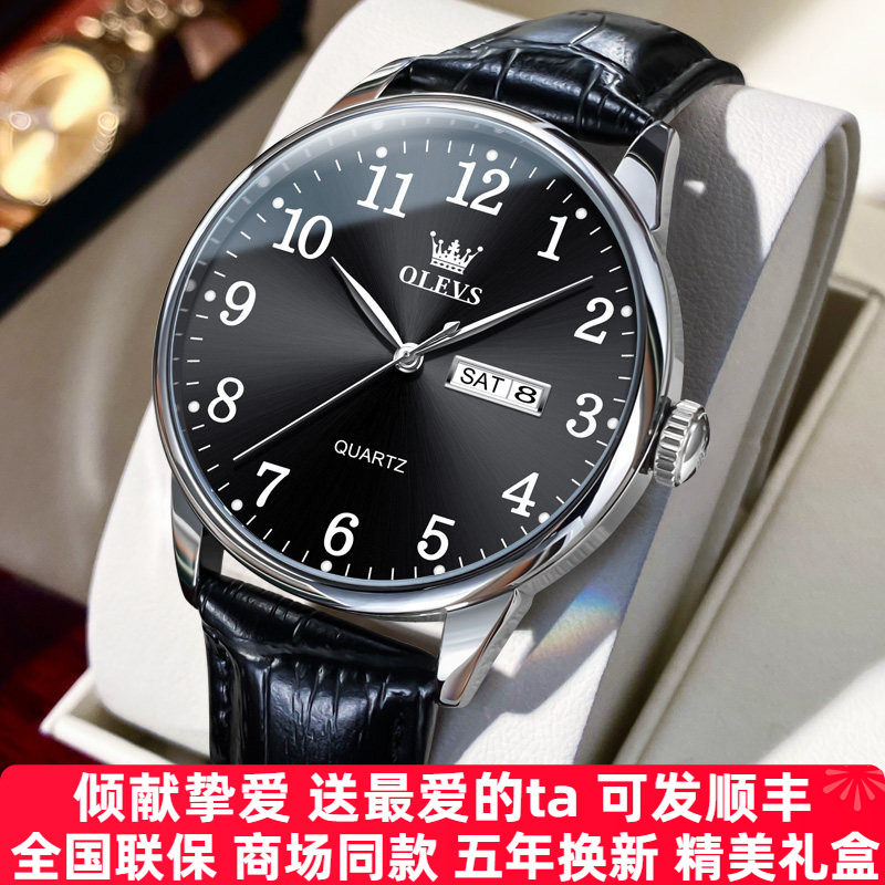 欧利时男士手表男款名牌正品商务简约防水机械风石英男表皮带数字