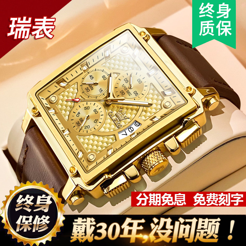 瑞士商务皮带手表男士石英腕表正品防水品牌名表男表抖音一件代发