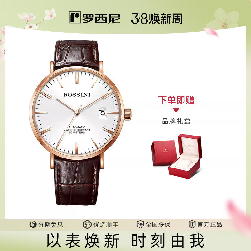 罗西尼新款手表男机械男表潮流简约男表皮带防水男士腕表518827